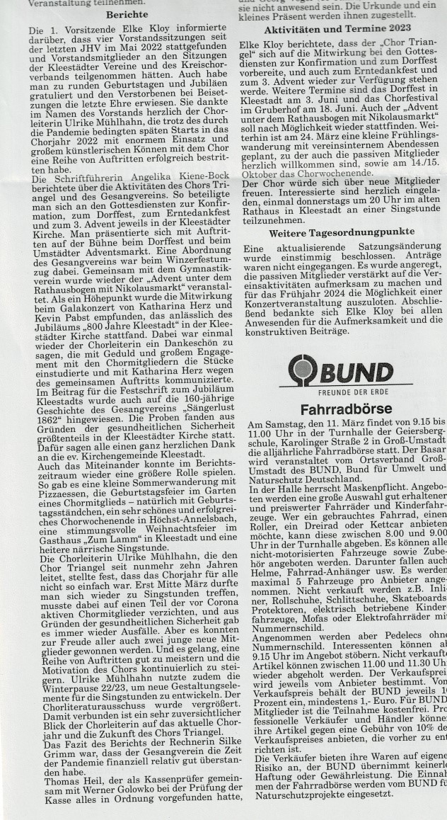 Chor Triangel Kleestadt